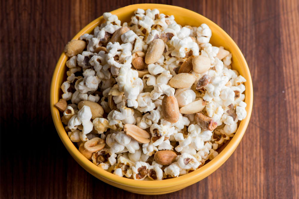 • Air popped popcorn with a mix of nuts. This snack is savory as much as it is healthy. Packed with vitamins, minerals, fiber, and protein, air popped popcorn is a perfect go-to.