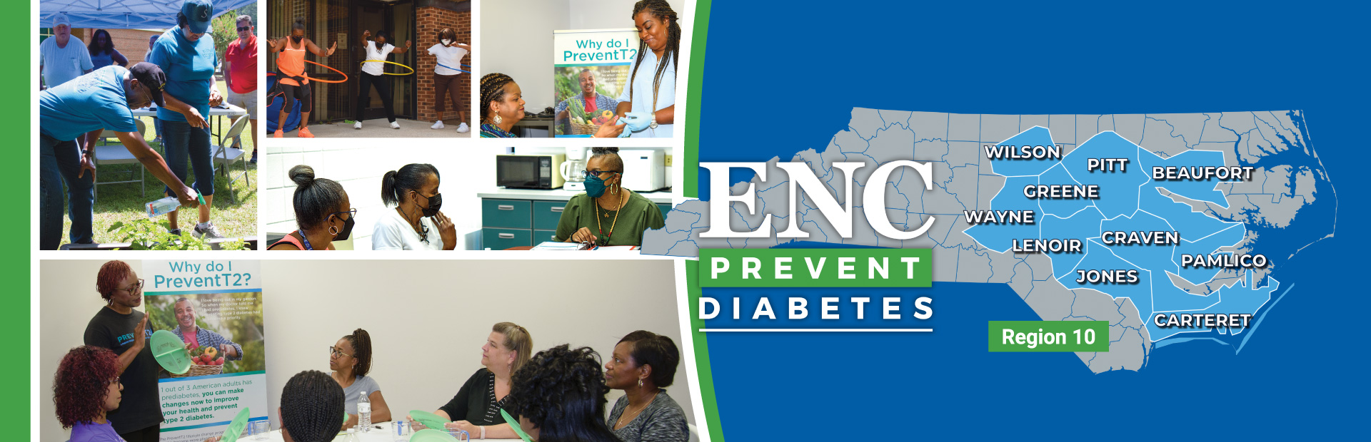 Eastern North Carolina Prevent Diabetes (ENCD) is a year-long program that is committed to providing Diabetes prevention tips and resources to participants across Region 10, a span of ten counties in Eastern North Carolina. The program offers classes led by Lifestyle Coaches in each county that give local participants an opportunity for accountability and demonstrate choices that lead to a healthier lifestyle. ENC Prevent Diabetes is a program for people that are at risk for developing diabetes.